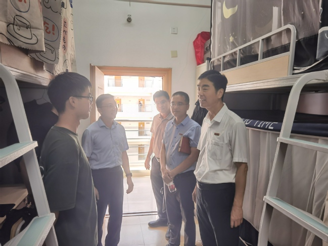 在走访学生宿舍中,林庆藩与同学们亲切交流,细致询问大家在学习、生活等方面的实际情况,认真听取意见建议。他叮嘱同学们要合理安排时间,互帮互助,共同营造温馨融洽的宿舍氛围。