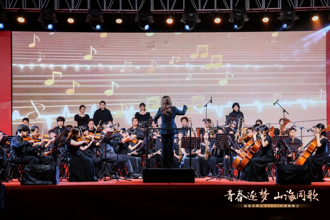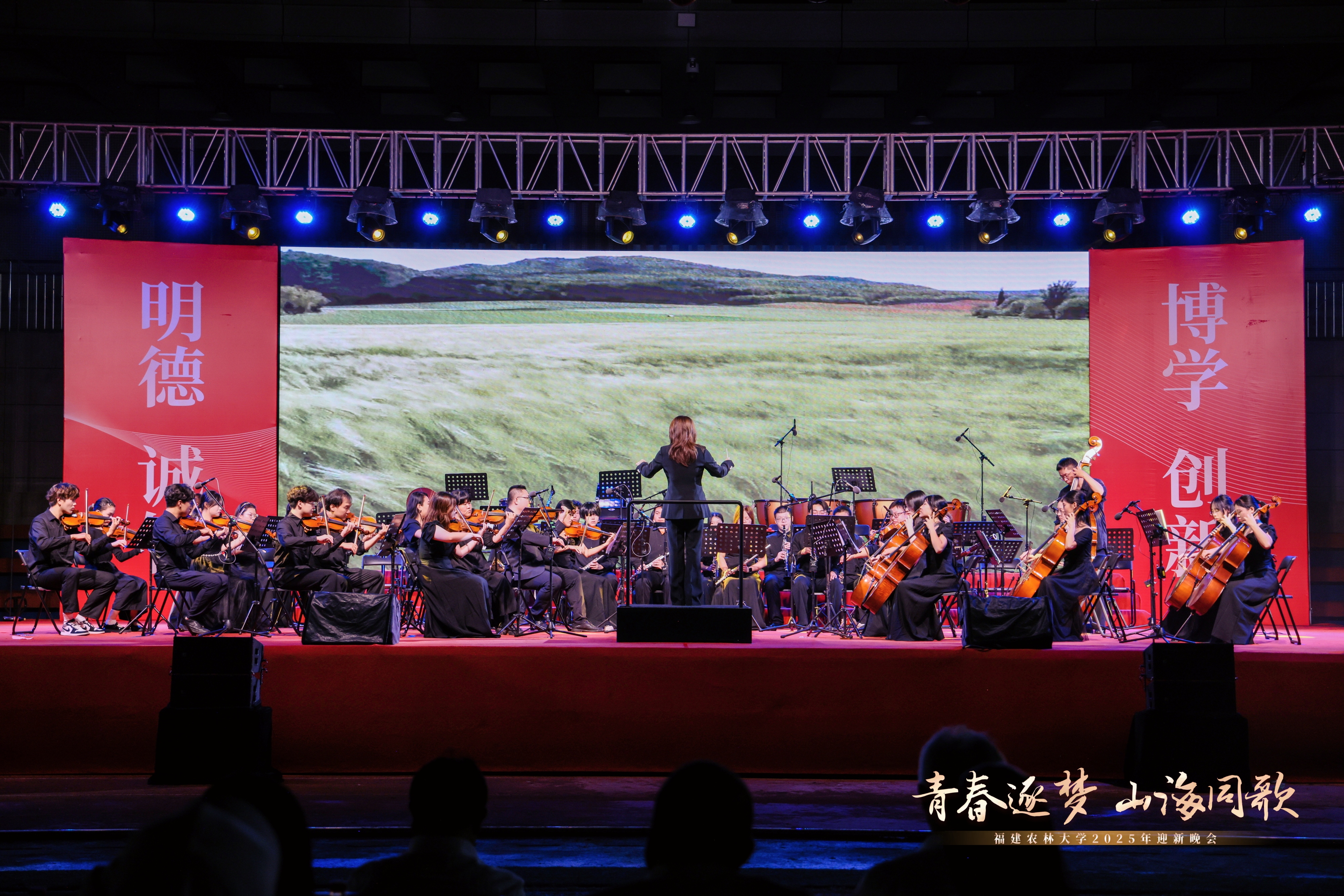 校大学生交响乐团演奏的肖斯塔科维奇的《第二圆舞曲》,恢弘的管弦乐在激情碰撞中奏响时代的青春强音,彰显福农人凝心聚力奋进国家“双一流”高校的卓越追求。