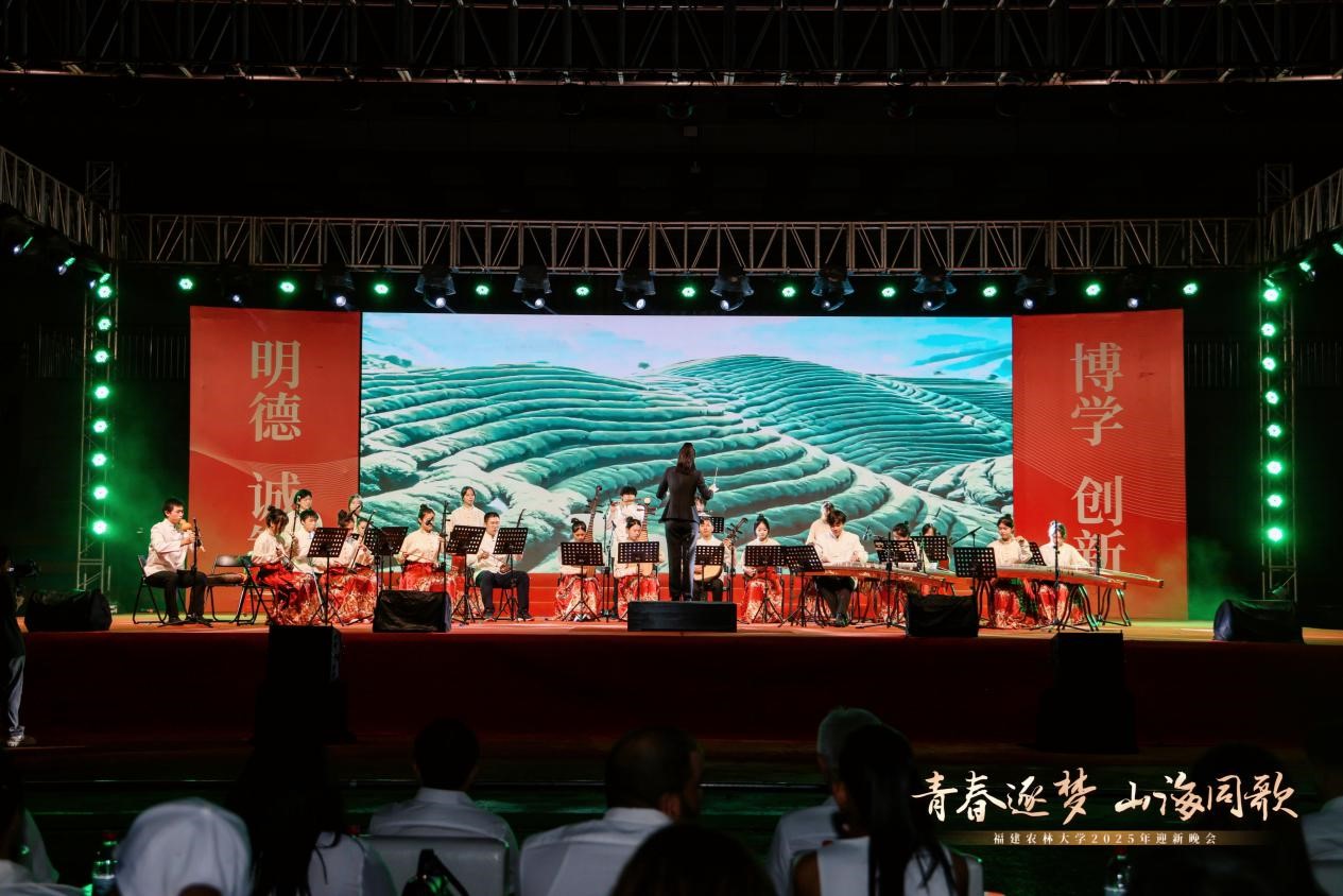 校大学生民乐团精心演奏的经典曲目《采茶扑蝶》,洋溢着浓郁的八闽风情与田园意趣。欢快的旋律仿佛将闽茶之乡的山野灵气融入校园,彰显了学校助推茶文化、茶产业、茶科技统筹发展的使命担当,展现出人与自然和谐共生之美。