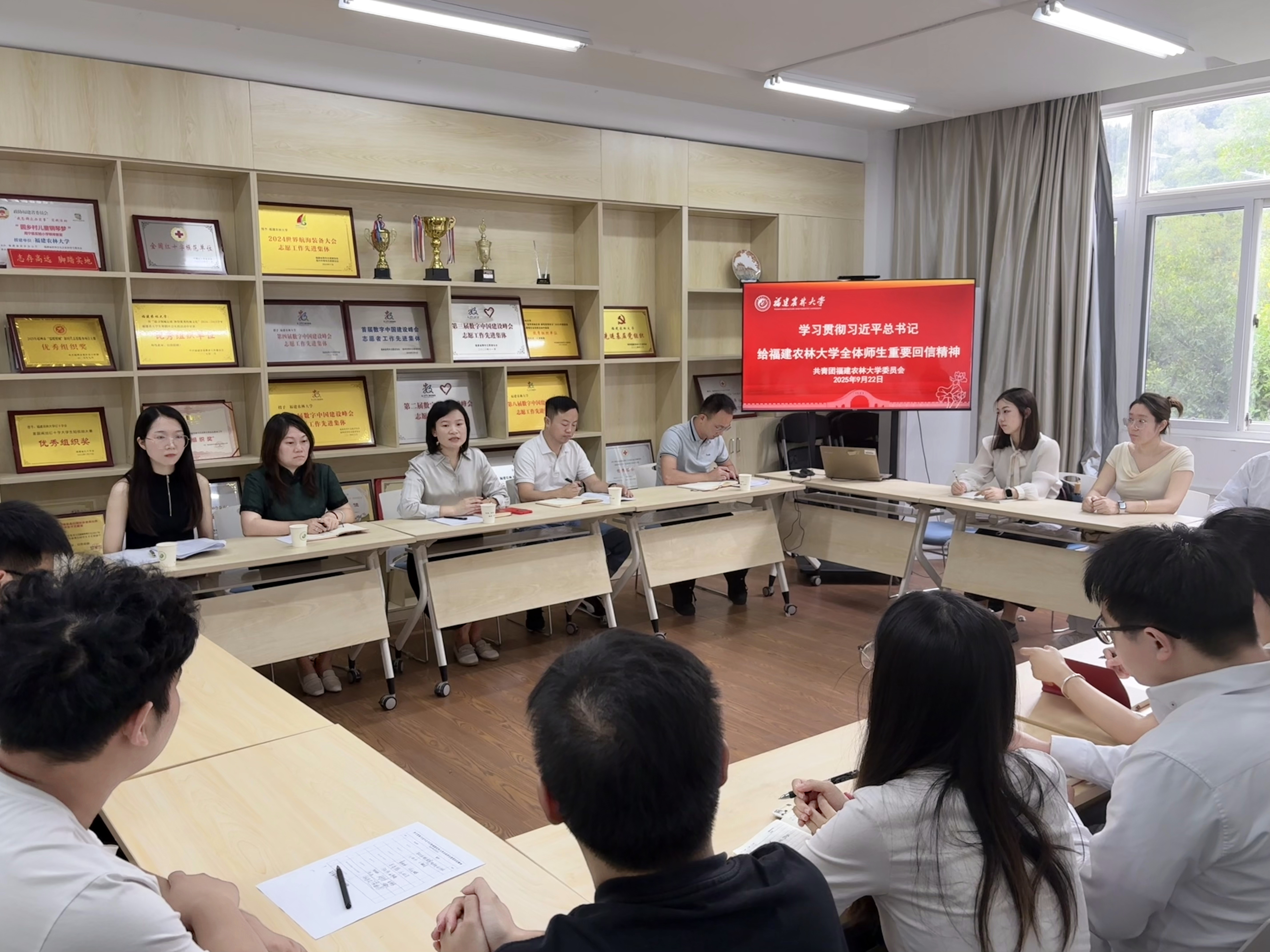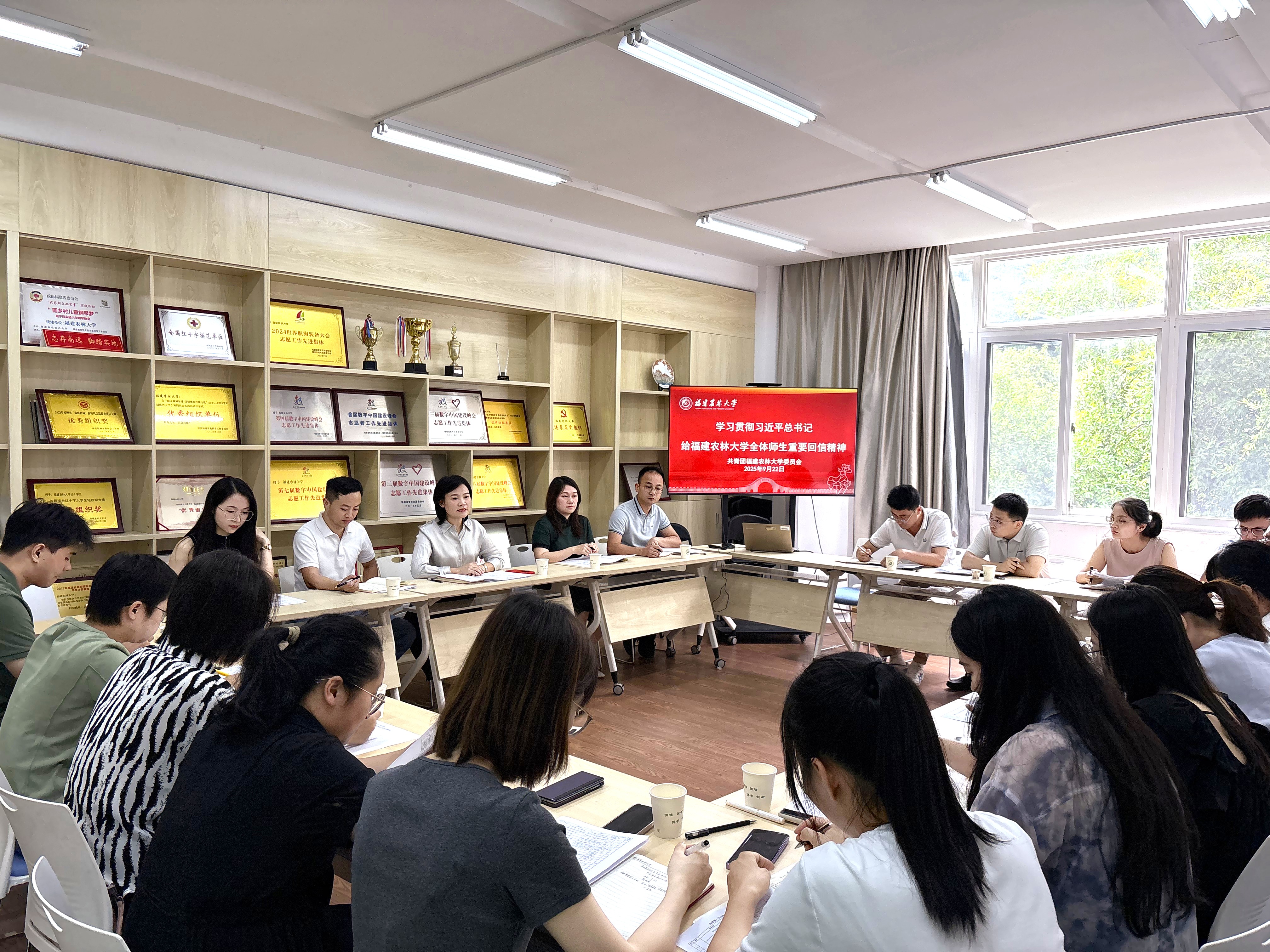 会议强调,全校团员和青年、各级团组织、团干部要把学习习近平总书记重要回信精神同学习贯彻习近平总书记关于青年工作的重要思想、与学习贯彻习近平总书记去年10月在福建考察时的重要讲话精神紧密结合起来,与传承弘扬习近平总书记9次莅校、3次指导、11次勉励共23次关心学校事业发展的重要指示精神紧密结合起来,深刻理解把握总书记重要回信精神的思想精髓和核心要义,把牢听党话、跟党走的青春航向;要加强组织化学习,发挥高校学生思想政治工作主力军作用,广泛开展学习宣传活动,迅速掀起学习贯彻热潮;要做好青年化阐释,将思想政治教育与校史校情教育有机融合,讲好习近平总书记关心指导学校发展的故事、福农人强农兴农的奋斗故事,引领广大团员青年感恩奋进;要打造特色品牌,发挥农林学科育人特色,继续深耕“三农”,讲深讲透讲活新时代的“大思政课”,激发团员青年感恩乡土的赤子情怀、助力乡村振兴的使命担当。