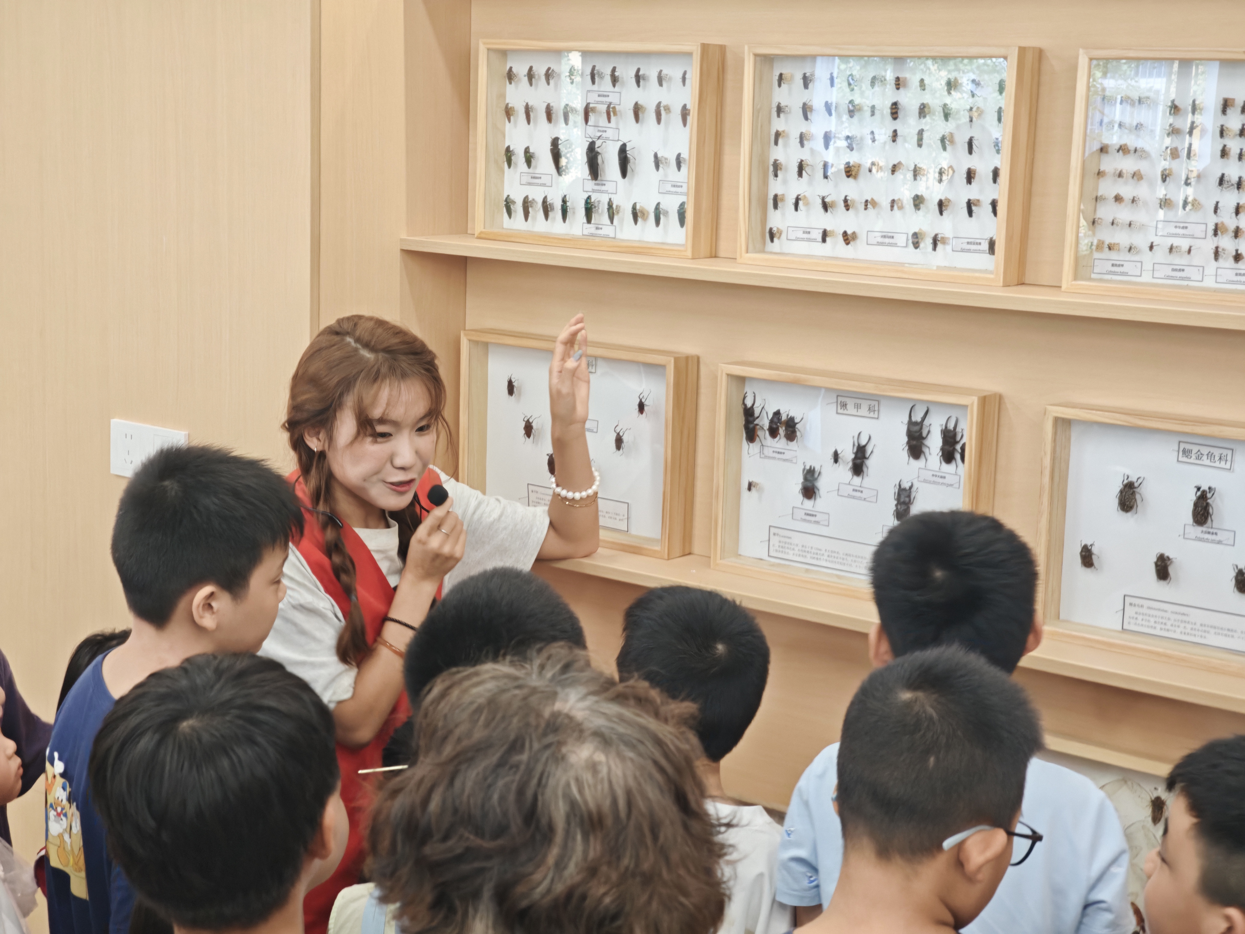 9月21日上午,植物保护学院“植此青绿”志愿服务队在博学楼4楼举办“走进昆虫世界,发现自然奥秘”高校星火馆开放日,邀请来自福州市南公小学的30余名小学生走进位于博学楼4楼的昆虫馆,通过沉浸式参观、趣味互动实践等多种形式,开启一段难忘的科学之旅。