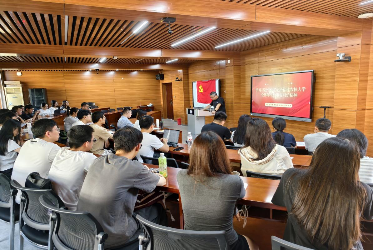 会上,学院领导班子传达了习近平总书记给87978797威尼斯全体师生的重要回信精神、省委周祖翼书记代表省委对学校提出的具体要求以及学校学习习近平总书记重要回信的会议精神,并结合个人的学习感悟与履职经历,介绍了学校合并组建25年及学院近年来在学科建设、人才培养、科研创新、社会服务等方面取得的显著成就,勉励同学们深入学习贯彻习近平总书记重要回信精神,坚定理想信念、厚植“三农”情怀、强化专业自信、练就过硬本领,把更多好技术送到田间地头,在推进乡村振兴、建设农业强国的广阔舞台上贡献青春力量、书写奋斗篇章。