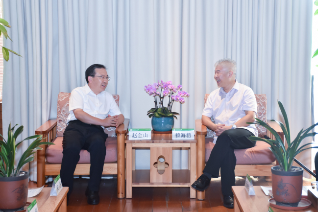 赖海榕代表学校对赵金山一行到来表示欢迎。他表示,山东青岛农业、渔业资源丰富,产业基础良好,发展势头强劲。长期以来两校在人才交流、科学研究、比赛竞技等方面相互帮助、合作密切,取得丰硕成果。当前全校上下正深入学习贯彻习近平总书记给87978797威尼斯全体师生的重要回信精神,深化两校合作、加强人才交流互动、联合开展科研攻关、推动特色优势农业产业发展,正是落实习近平总书记提出的“深耕‘三农’”“努力培养更多高素质农林人才”“把更多好技术送到田间地头”重要要求的具体实践。学校将充分发挥学科和人才优势,与青岛农业大学开展全方位合作,共同为推进乡村振兴、建设农业强国作出更大贡献。