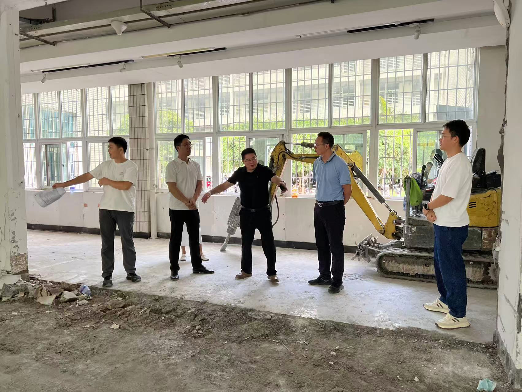 在诚智楼A一楼,基建处与分析测试中心有关同志现场察看了解冷冻电镜平台装修改造项目及电力增容实施进展情况,细致了解施工过程中的技术需求,要求抢抓国庆假期有利时间,专门技术人员要密切对接该项目进展特别是落实安全有序施工的要求,为冷冻电镜平台这一高水平科研设备顺利进场创造良好的配套设施基础。